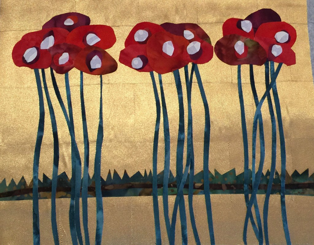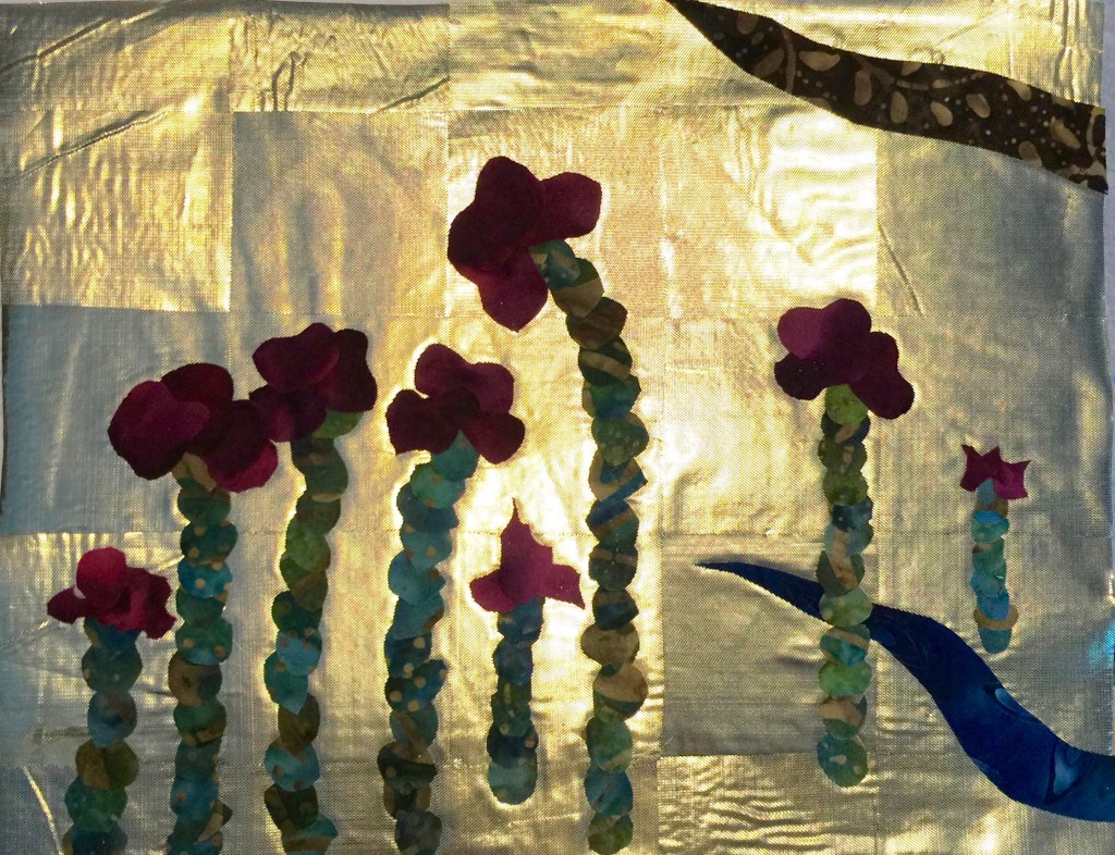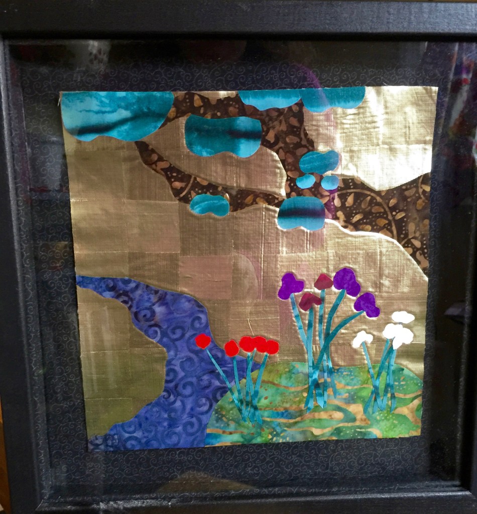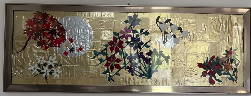 ‘Rimpa’ is a misnomer, since I do not recreate the particular watercolor effects that the work rimpa describes, but it does denote the basic gold leafed, abstract landscapes or floral still-life that I have done. These pieces are usually 8″ x 10″ and fit nicely into shadow box frames. Sometime soon I hope to teach a class on these.
