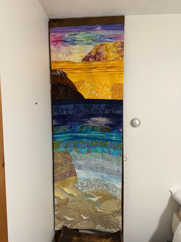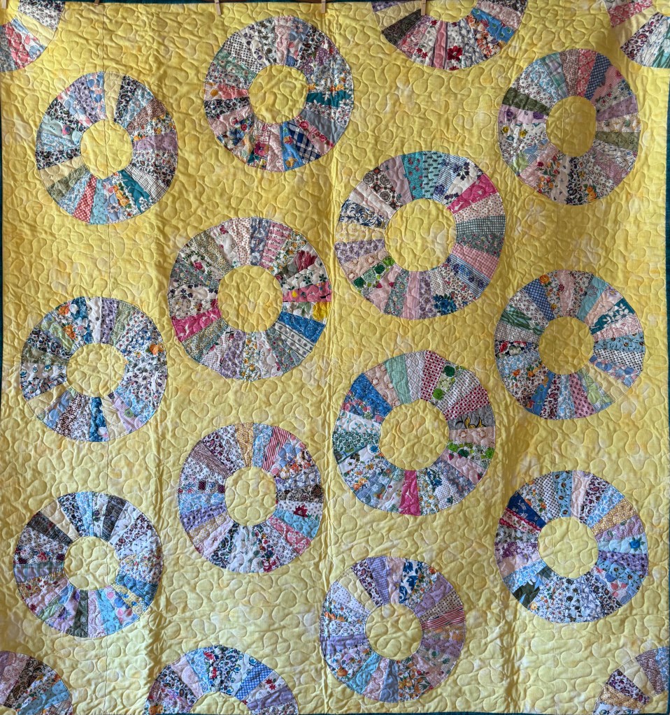 Last year 2025 was quilt-busy. I’ve gotten back to the Las Passacaglia that I started a few years ago. My Dresden Buffet won 1st Prize Small Quilt at the Bondville Fair this year! My first quilt restoration project made lots of progress. I also completed a long awaited Dreaming of the Beach II, a copy of one I had sold several years ago. One of this year’s raffle quilts, Kid’s Kwilt, for the Bondville Fair Quilt Show was a charmer. The other raffle piece made from donated-antique blocks Antique Fan Circles. I had a lot of older quilts at theShow and the Bennington QuiltFest that year.