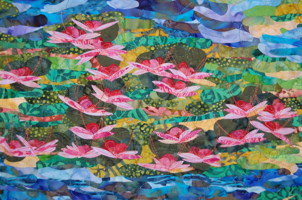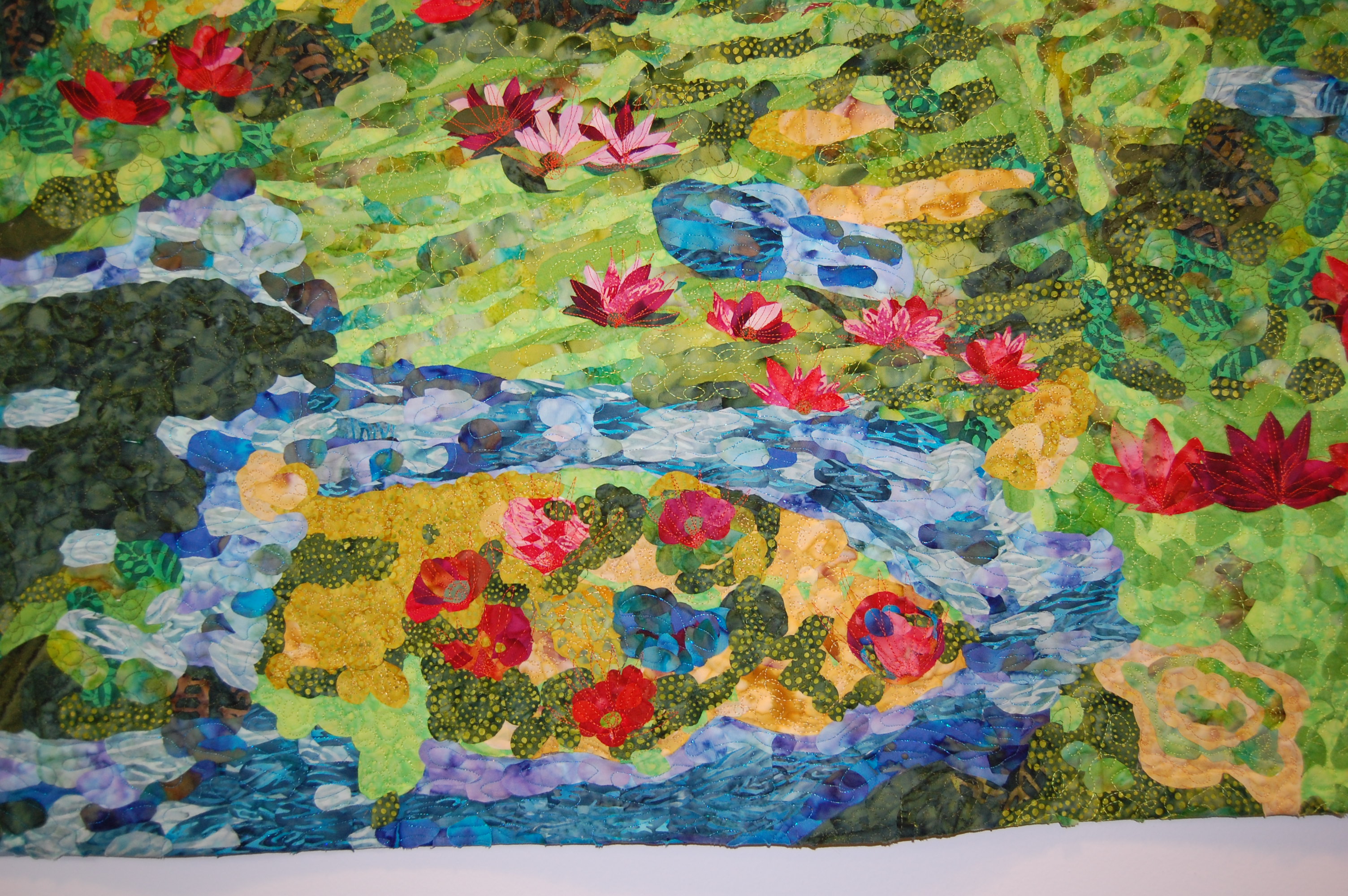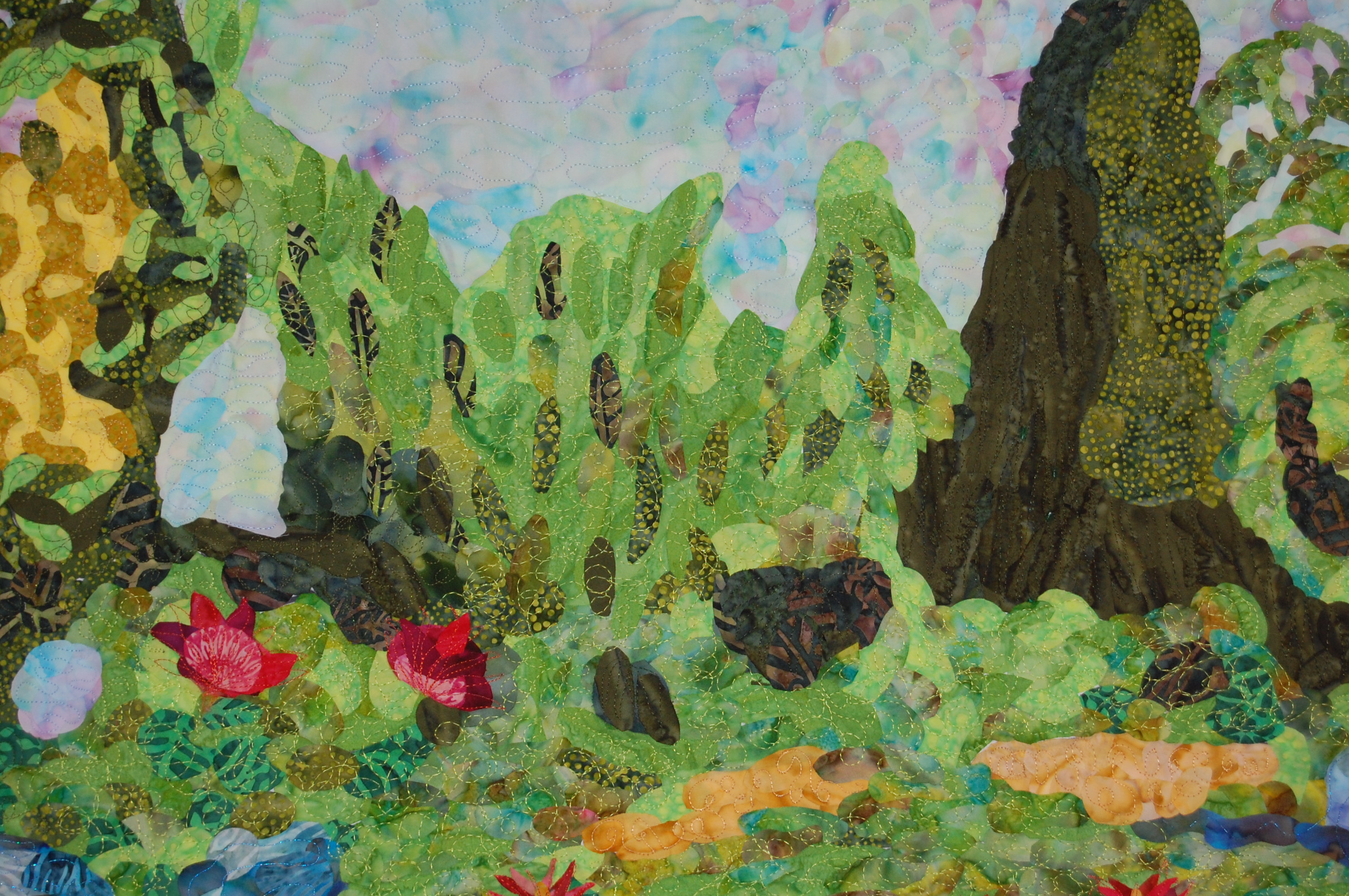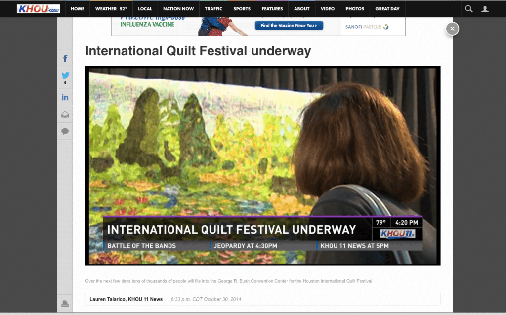 This quilt was a group project that I designed and managed over about a year at my office. There were a dozen of our staff (including myself) who were involved in this quilt, and it is currently hanging in our waiting room. This quilt was hung at the 2014 International Quilt Festival in Houston and appeared in the September 2014 edition of the Quilters Newsletter Magazine. It also appeared on local Houston KHOU News, and in Luana’s Favorite Quilts (see below, starting at 1:40 sec) that year.