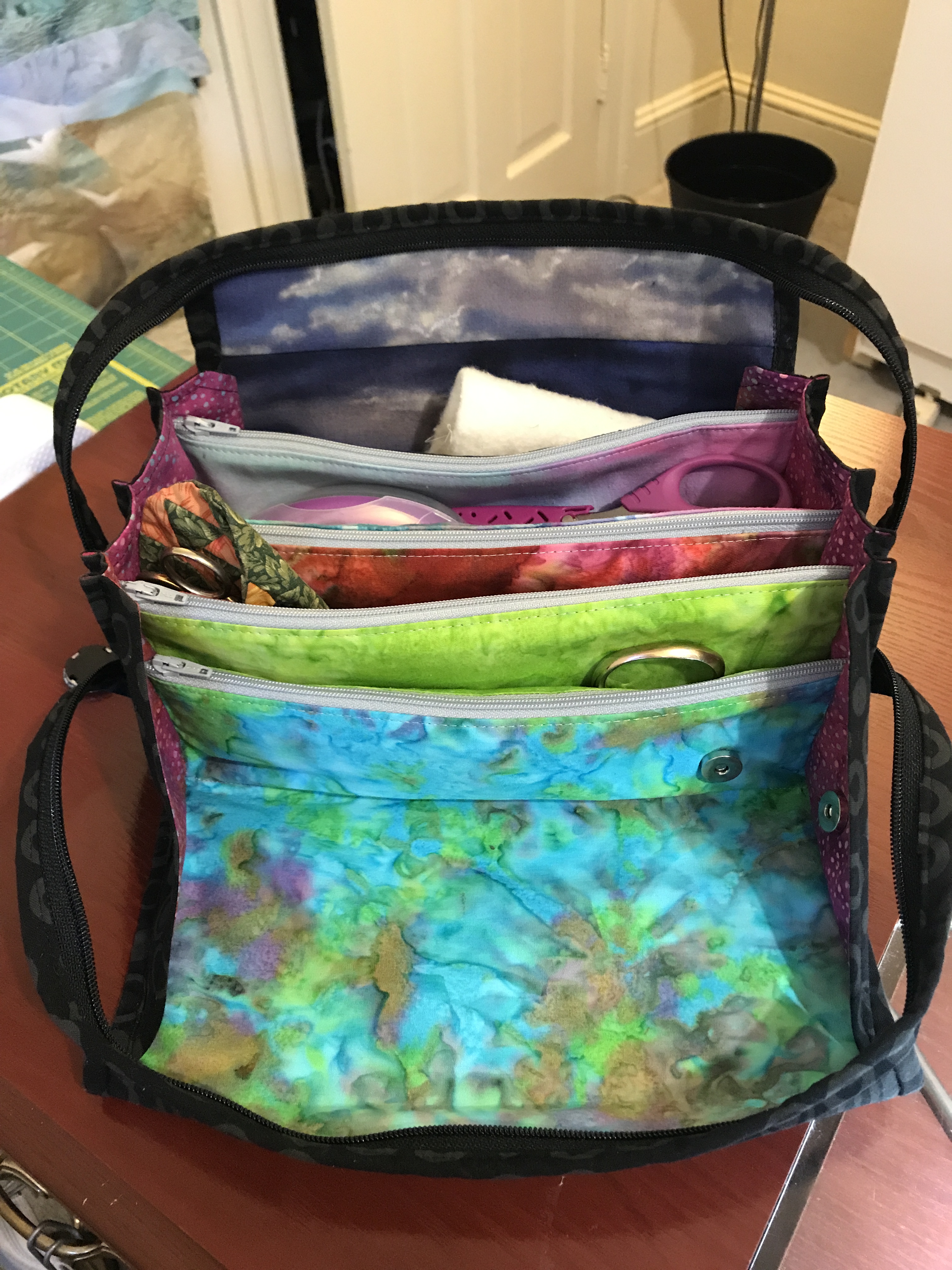 In the past few years I have been intrigued by the work of designed Sally Thompson, who has designed the Bionic Gear Bag, a wonderful project and an amazing bag to anyone. I immediately purchased her award-winning pattern, and started working on it. It’s an amazing deal at $13! Then I purchased her video workshops for less than $30 and now I have made about 15 of these.