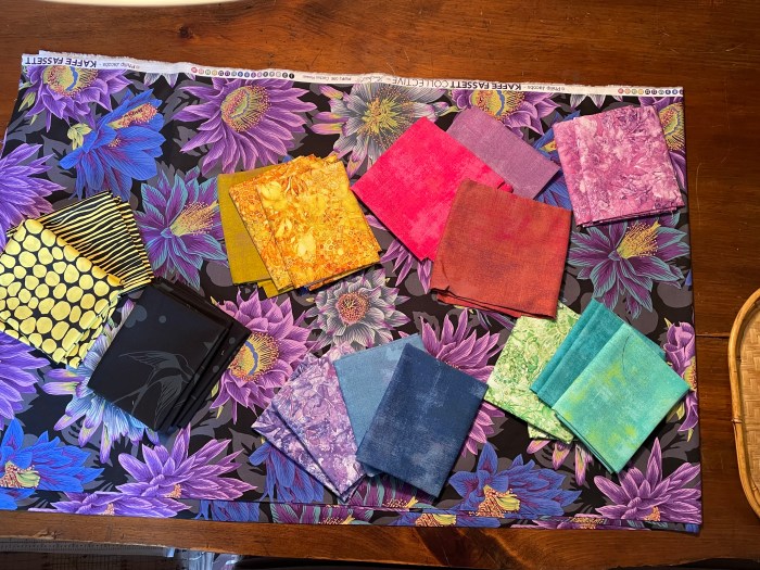 I began this quilt in June 2022, and only finished piecing each of the 11 rows in early March. It's my third English Paper Piecing (EPP) quilt and I'm still in love with the technique! It's based on Willyne Hammerstein's Gitana Fiesta (see middle image below). I'm working in lavenders and I'm really excited about … Continue reading Gypsy Party, 41″ x 49″, Vermont, 2023