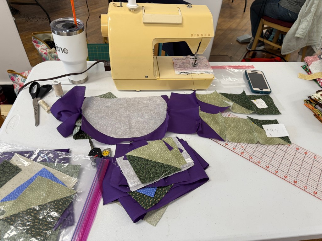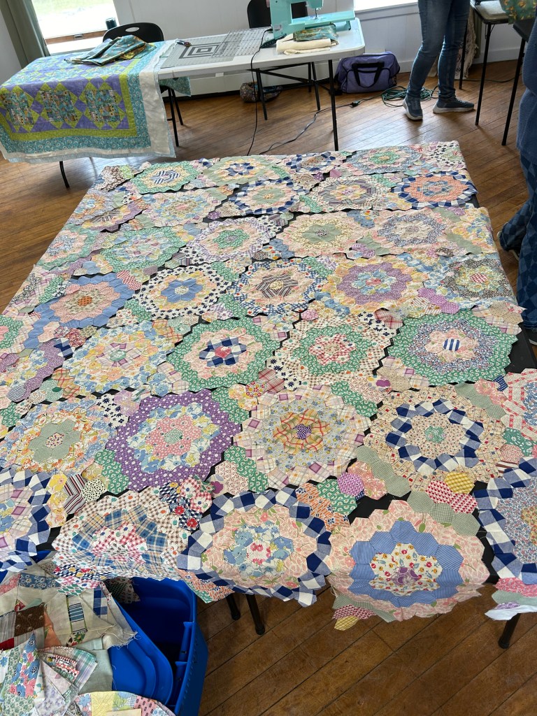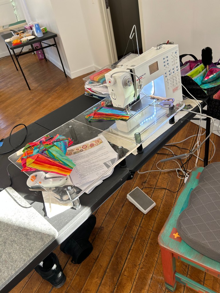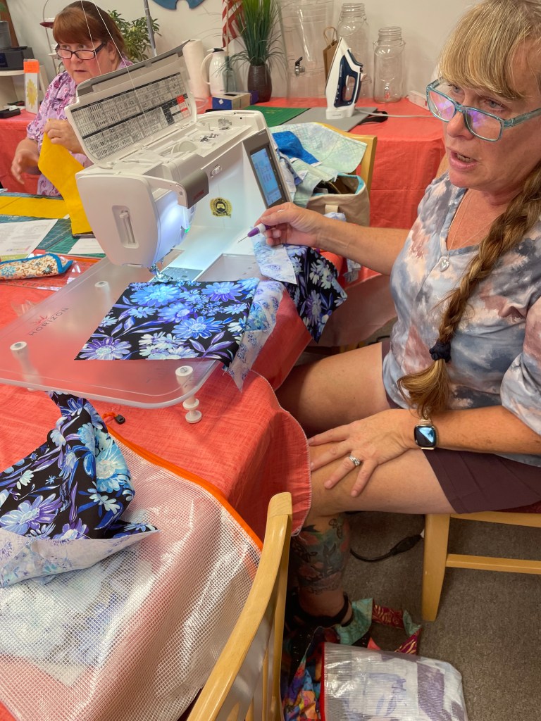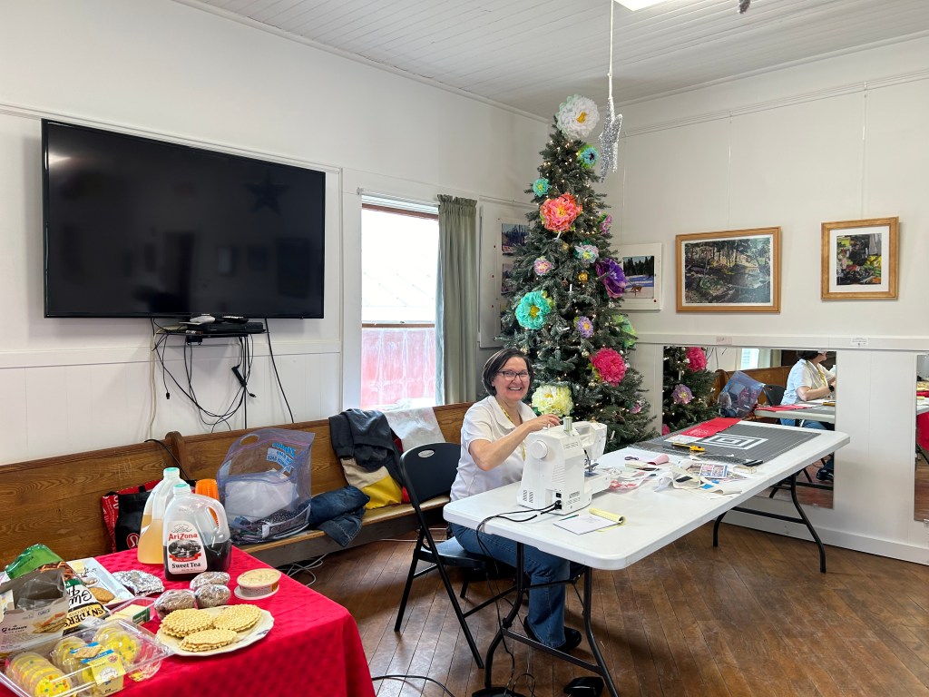 Below are some images from each year. We are a nice group, we are always ready to help someone with their sewing or quilts, and we even help sandwich up quilts for each other. Many hands make light work! Sewing together, talking about life, laughing, and snacking is just about the most perfect day you could ask for! We are mostly quilters, but ANY CRAFTING IS WELCOME!
