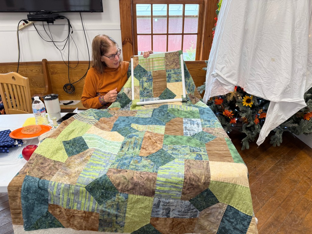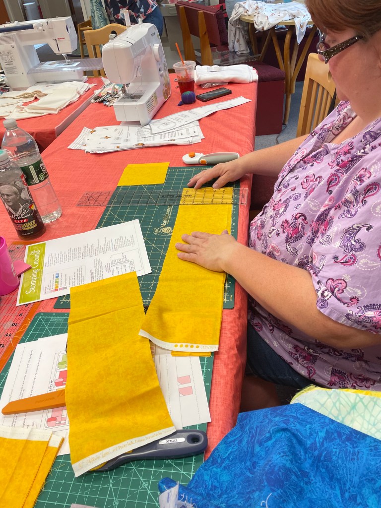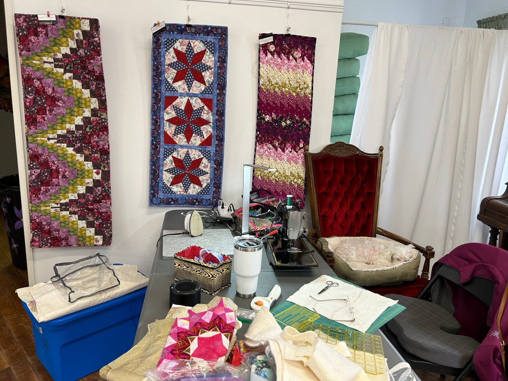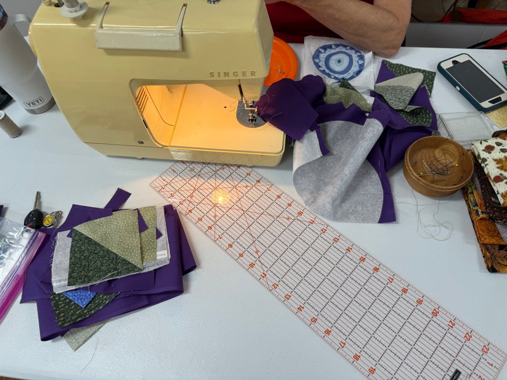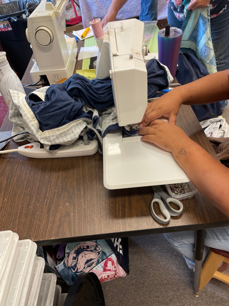 Below are some images from each year. We are a nice group, we are always ready to help someone with their sewing or quilts, and we even help sandwich up quilts for each other. Many hands make light work! Sewing together, talking about life, laughing, and snacking is just about the most perfect day you could ask for! We are mostly quilters, but ANY CRAFTING IS WELCOME!