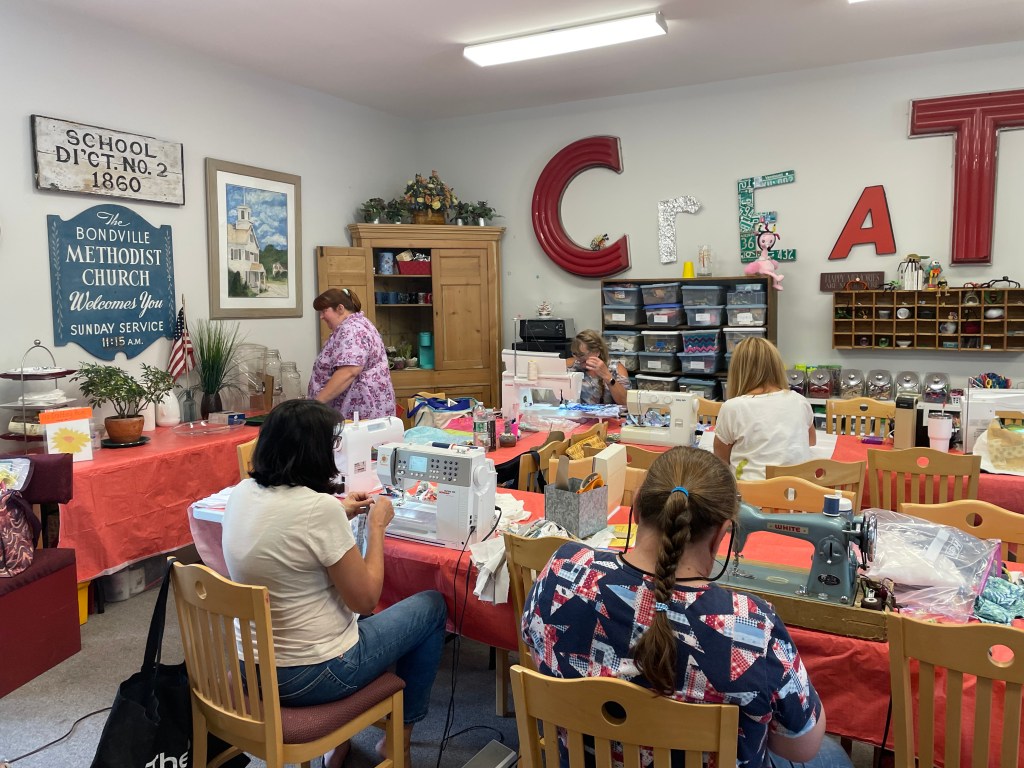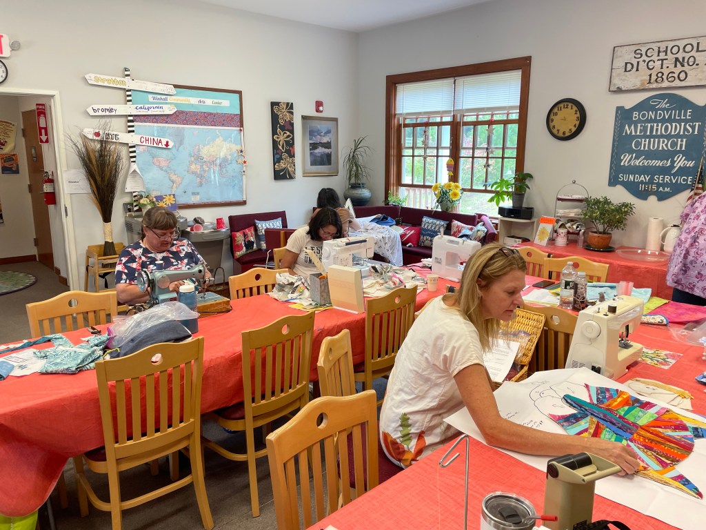 Hi Sewers! Welcome to the Stitch-n-B*tch (SnB) webpage! We started SnB in the fall of 2022, to have a place to sew outside of our homes and those distractions. As of 2026, we are in our 4th year of our monthly sewing group. If you have trouble getting sewing done at home, come join us each month! We get together in the Winhall Community Art Center here in beautiful Bondville, Vermont. Our sessions are twice a month, on the 2nd and 4th Sunday of the month, from 11am to 3pm.