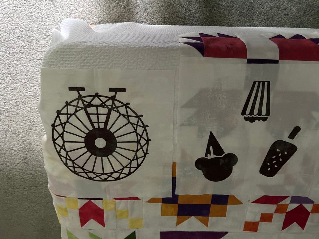Completed in August for the Fair, this gorgeous Modern quilt was designed by Karoline Wallace and Penny Allen, and machine pieced, appliquéd and quilted by Penny Allen and raffled off earning much-needed funds for the Fair.