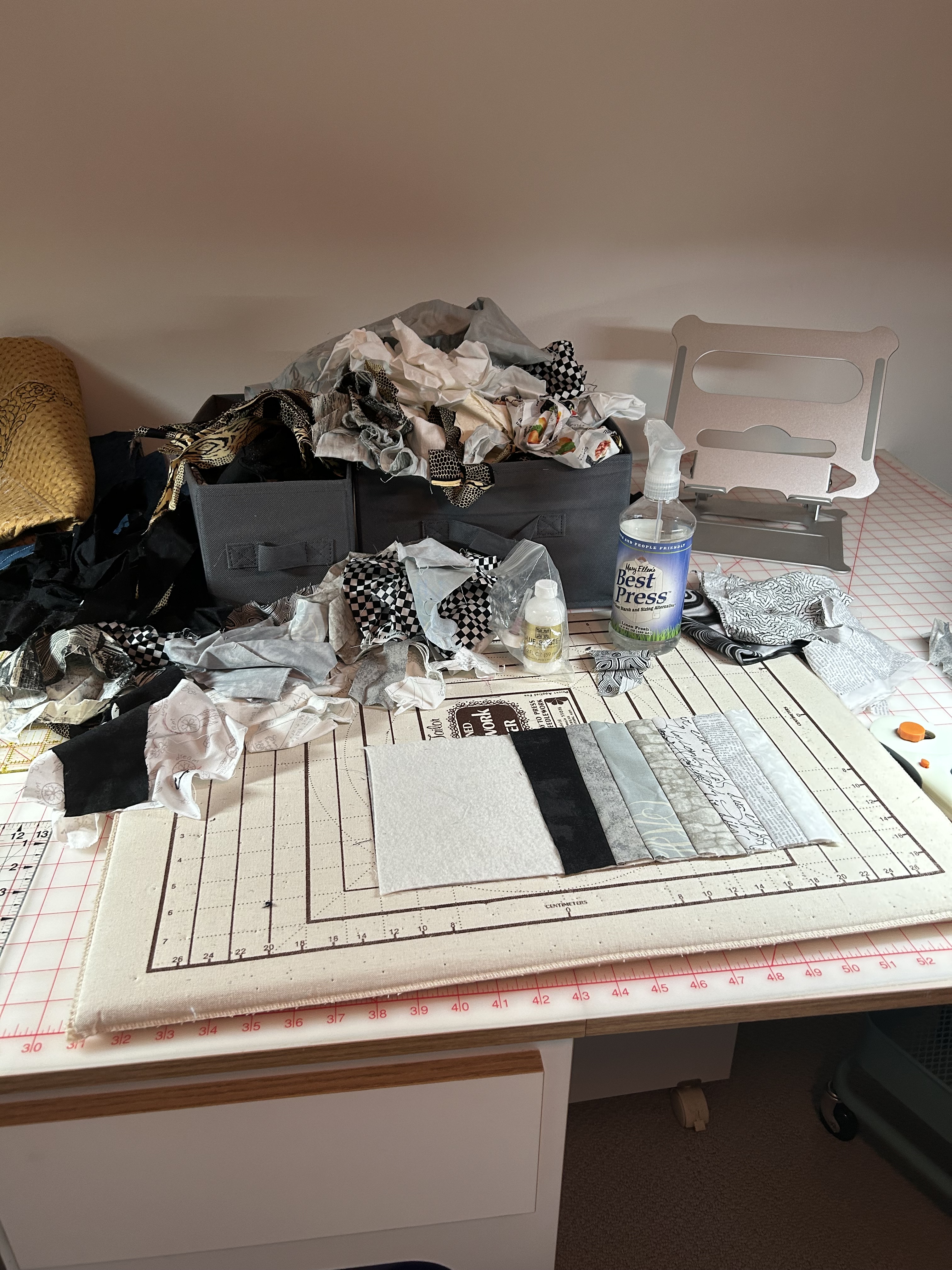 My original intent was to make a QAYG quilt using each color way of my scraps, but now I see that I can make more than a whole quilt out of each color! I’ll figure that part out, but I do want to put these scraps in some sort of size order for future scraps quilts. I would love to do a Terry Rowlands Color Wash quilt out of scraps for instance.