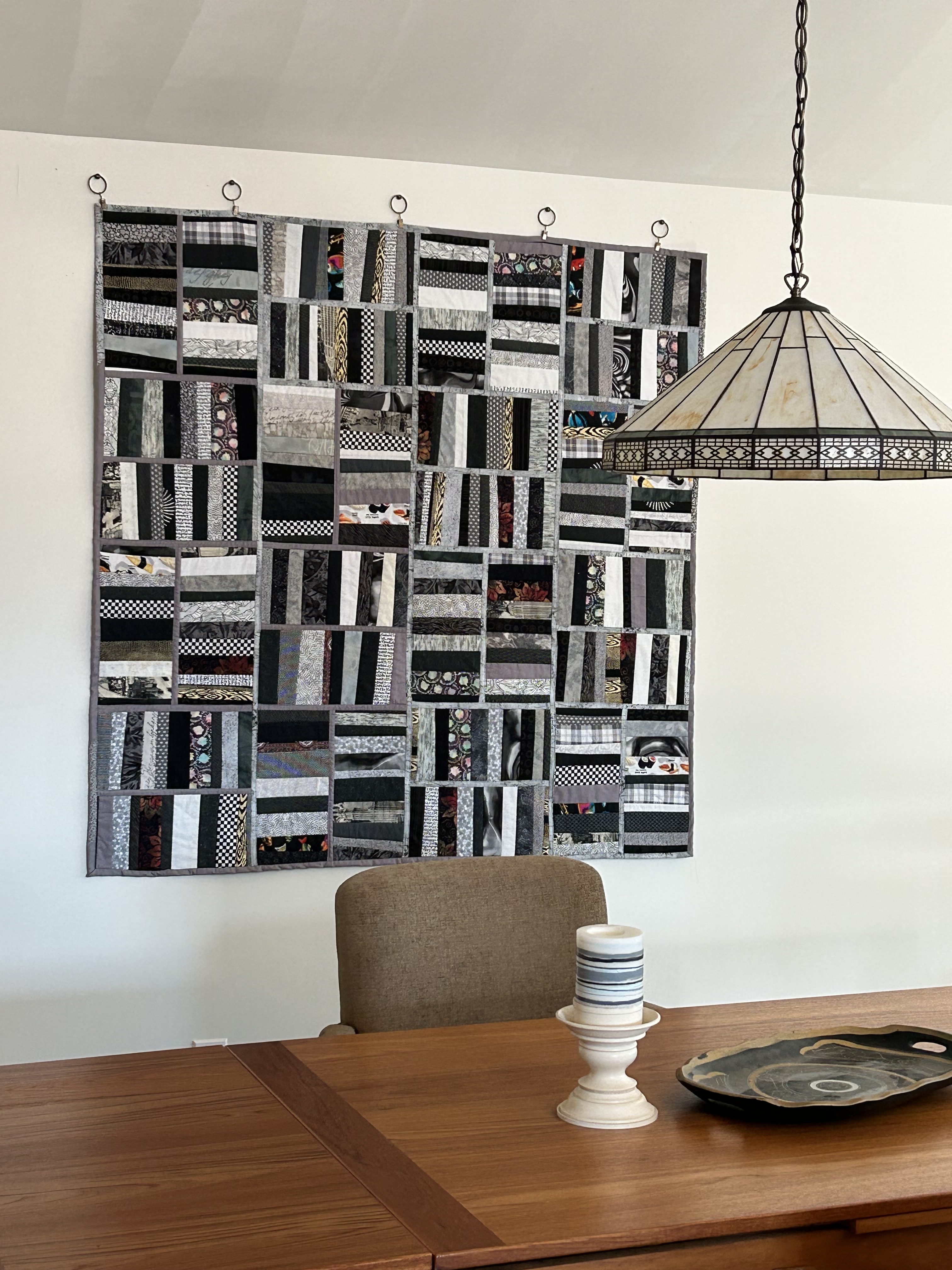 The scrap buster! I have now gotten my sewing room in the new house into decent organizational shape, with the help of my mother of course! So now I’m diving into the scrap piles by color – otherwise known as memory lane. I just completed this one and I love it!