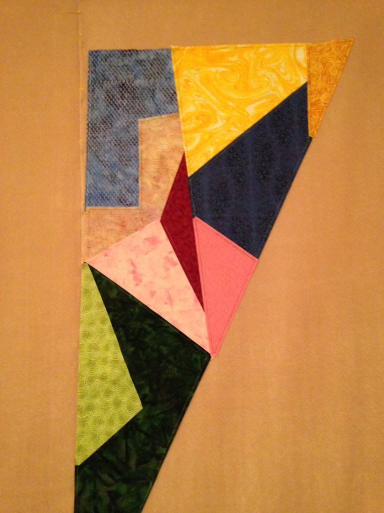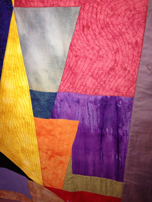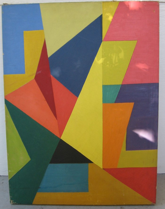 A replica in fabric of the abstract painting my paternal grandfather, the artist Oscar Weisbuch pained in 1947 (76 years ago), pictured below. This quilt is intended for my brother Clark. I started it in 2013, but it got lost in the shuffles of my life for 10 years. I finally finished it and I love the result.