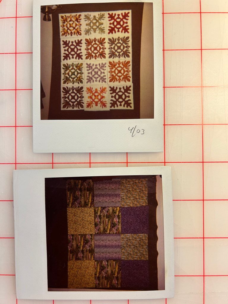 Having started in 2001, I am as usual finding and finishing old quilts in my new sewing room this year. I’m on a tear! This one is hand appliquéd and quilted, and I used the Quilt-As-You-Go method to sash it and finish it. This is a queen topper at 62″ x 62″. I loved getting back into the hand quilting required to finish about 5 blocks! Wow, it’s like riding a bike! this quilt was shown at both the Jamaica Day and Bondville Fair Quilt Show in 2024. It was purchased by Jessica P, who was also kind enough to allow me to show it at QuiltFest too! Thanks Jessica!