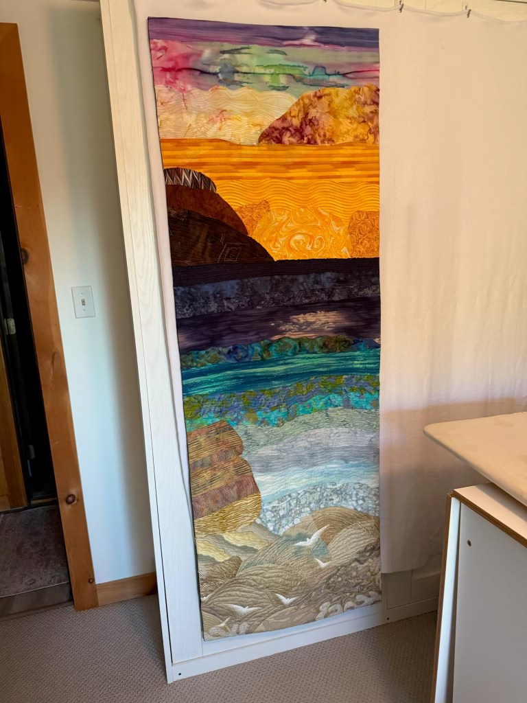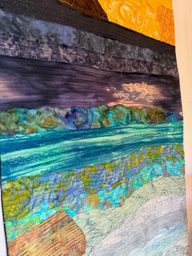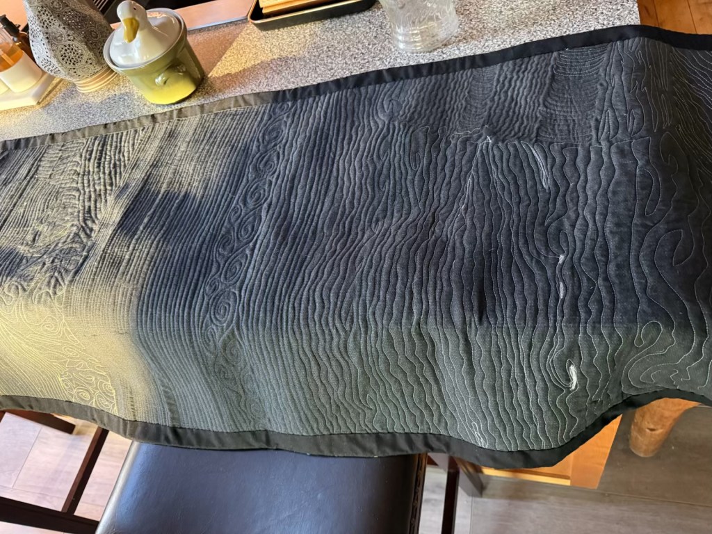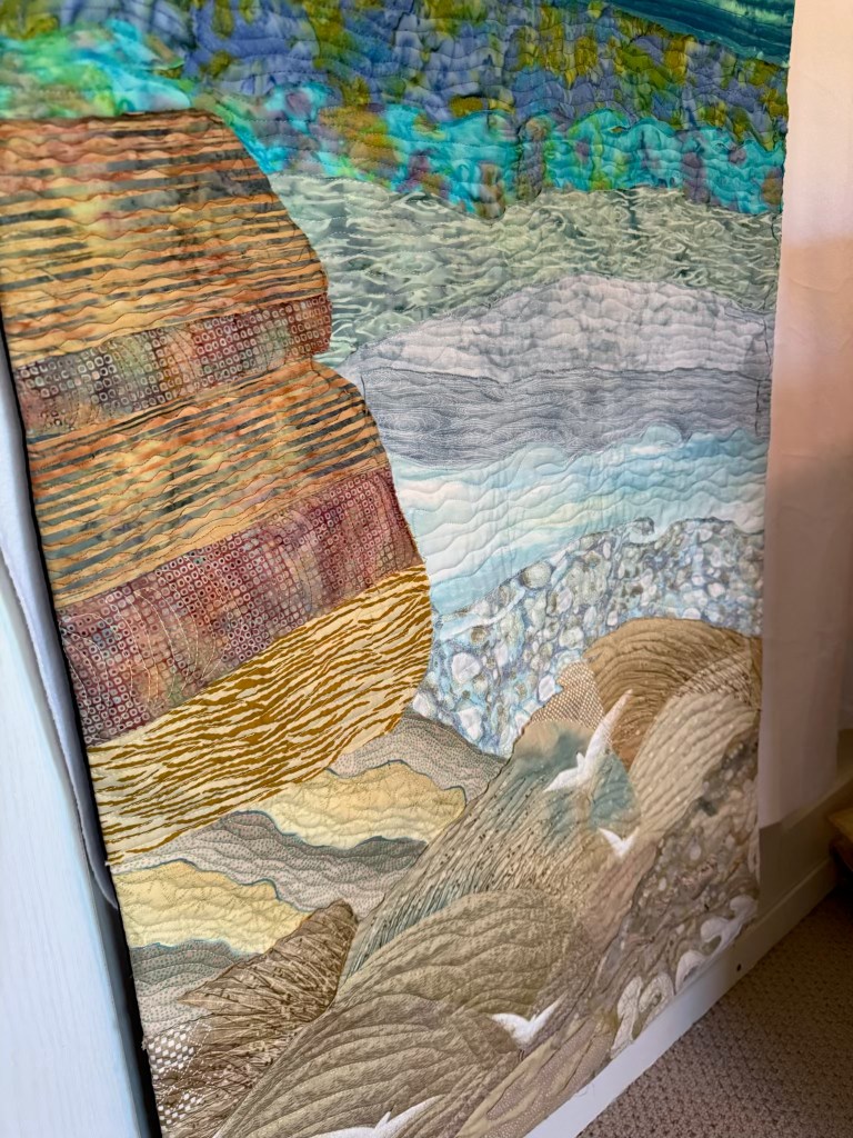 Since my last version of this quilt sold right off the wall in 2019 at a local art show, I was compelled to make another one! After all, I only made it to fit on a specific wall in my sewing room, and also as a free-motion sampler. It was also a way to play with Zazu’s Raw Edge Applique technique I really admired. So I have been working on that again and although I have been side-tracked by the pandemic and other life changes such as moving back to Vermont, I was able to complete it in September not before the Bondville Fair, but in time for the Bennington QuiltFest.