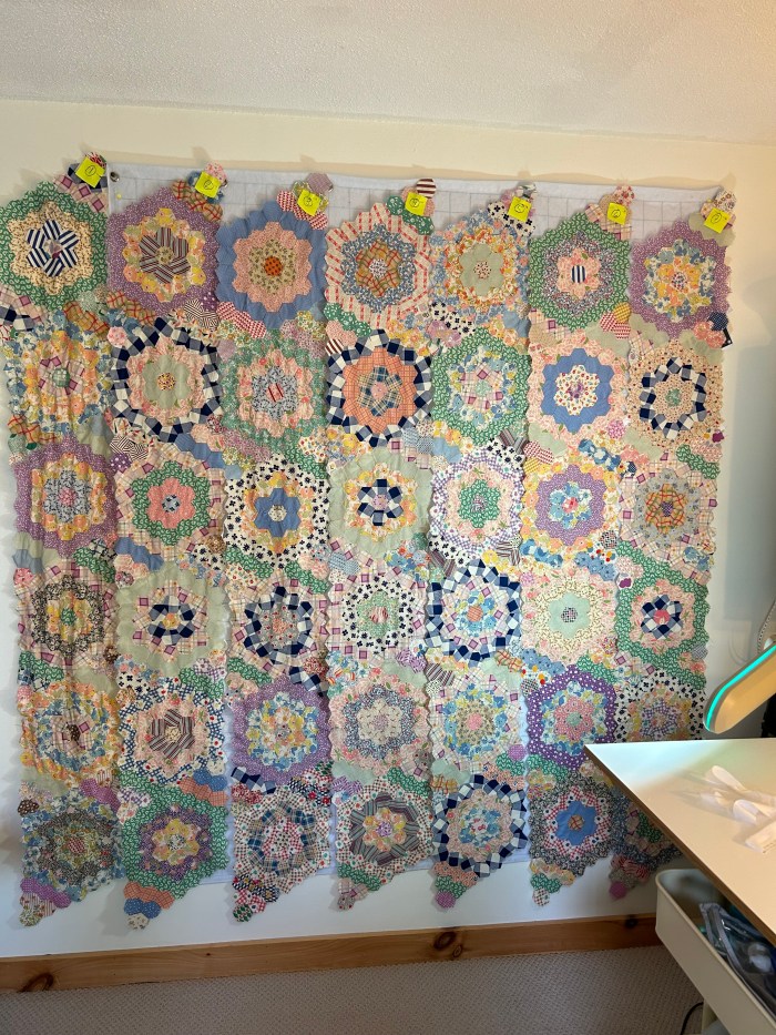 Above are various iterations of designing and piecing this quilt from April to September 2024.