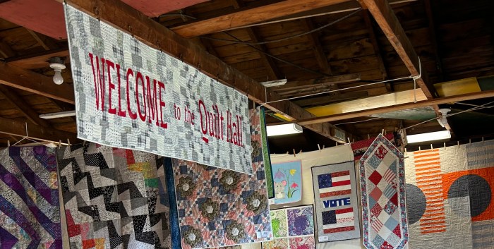 Two banners I made for the Quilt Hall to welcome everyone in, and to denote the new Sew Shop at the back.