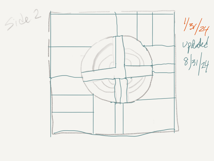 Not much to see yet! This is a Quilt-As-You-Go technique from Sharon Peterson in her More Reversible Quilts book. This is perfect for my living room knotty pine wall, and it's 2 quilts in one so I can reverse it with the seasons or my whim. It's designed and my freezer paper pattern is done. … Continue reading Circle of Life, in Progress